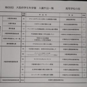 第69回大阪府学生科学賞応募作品展報告