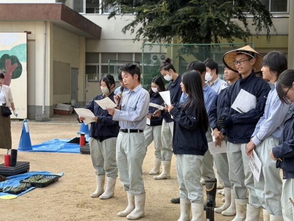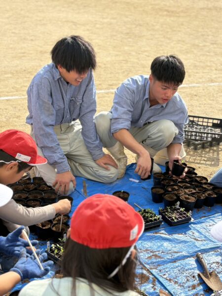 10月27日(月)、園芸デザイン専攻三年生は、園芸高校から1番近い小学校の北豊島小学校へ出向き、花苗の鉢上げ作業を教えに行きました。