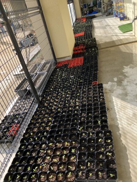 10月3日(金)の種まき授業で播種したキンセンカの苗も立派に育ち、ビオラやクリサンセマム苗とともに持参しました。
