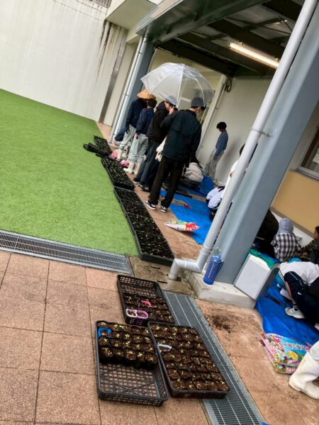 ほそごう学園のスクールバスで送迎していただき、無事に鉢上げも終わりました。私たちが関わった花苗が、ほそごう地域の緑化に貢献できることが嬉しく、誇らしく感じます。