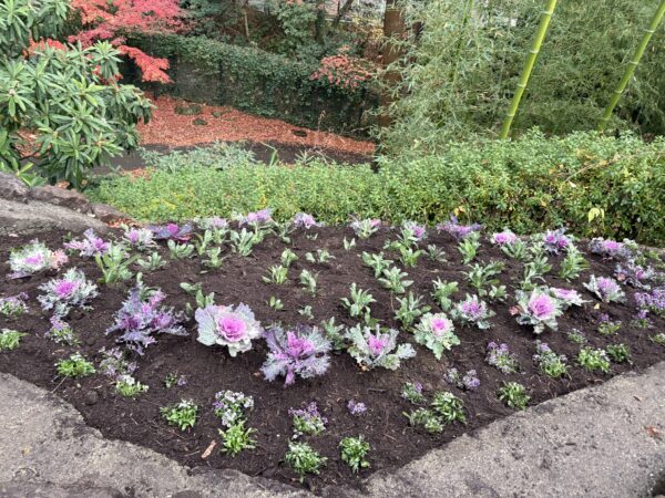 12月17日(水)、池田城跡公園の門前花壇の定植へ行きました。