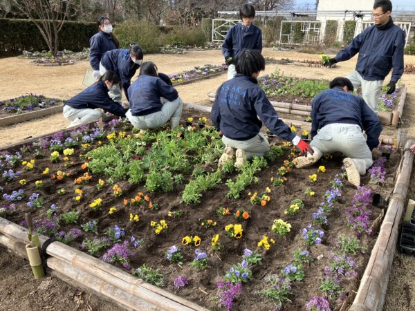 3年生ともなると慣れたもので、あっという間に作業が進んでいき園芸高校最後の花壇定植が終了しました。
