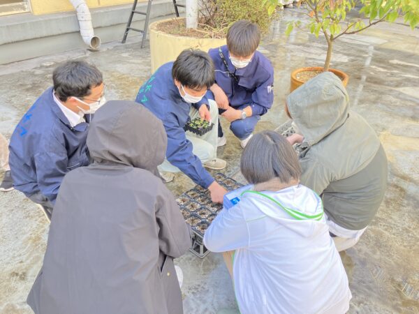 園芸デザイン専攻では、3月27日に社会法人 愛仁会 井上病院の皆様と花苗の栽培管理作業を行いました。
