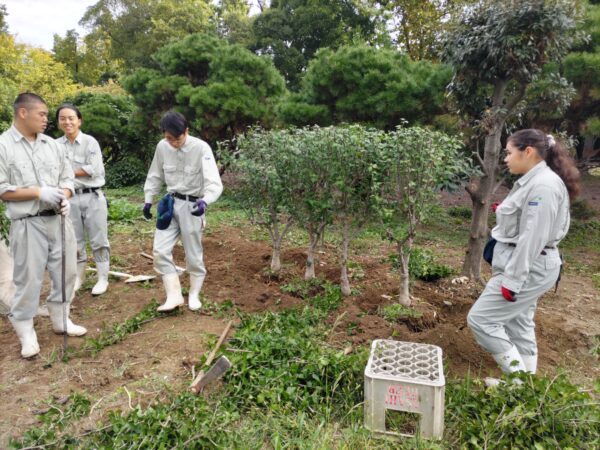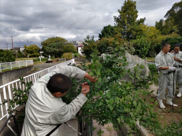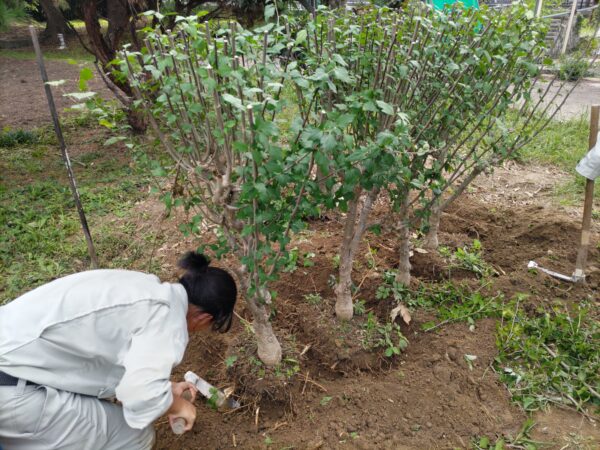 環境緑化科の活動ブログ 2年生実習(樹木の移植) 2025.10.31 先日、2年生の実習で、ムクゲの移植を行いました。 3回目の移植実習ということもあり、慣れた手つきで、移植作業を行ってくれました。 掘り取りの準備 唐ぐわで少しずつ根鉢を作る 蒸散を減らすための剪定 移植して、水極めを行い完成 Prev Next 一覧へ戻る