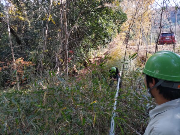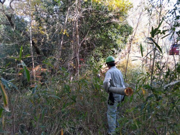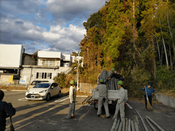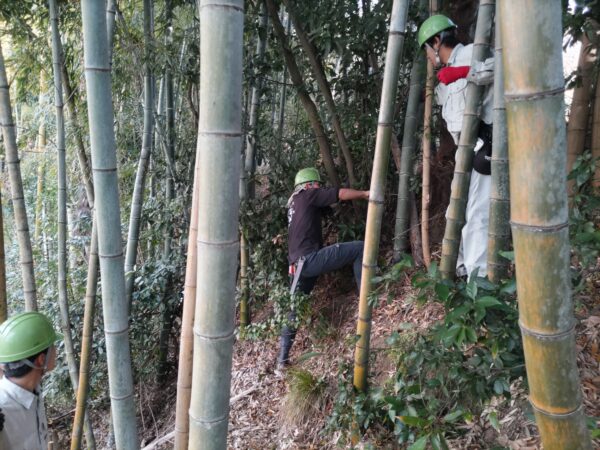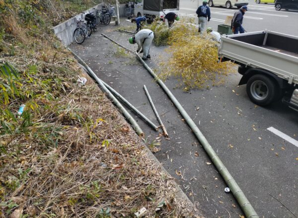 環境緑化科の活動ブログ 門松用の竹取 2025.12.12 12月も中旬になり、年末年始の準備が始まりました。 環境緑化科では、毎年、門松づくりをしており、その準備として、竹取に行ってきました。 まっすぐで、程よい太さの竹を切っていく こんな斜面でも作業します 切り出すのも一苦労 運び出しも一苦労 運び出した竹をきれいにしていきます 一先ず、お疲れさまでした。 これから、門松づくりが本格的に始まります。 Prev 一覧へ戻る