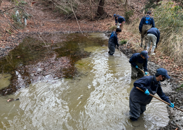 池田・人と自然の会の関係者様にご協力いただき、現地調査を行い、周辺のゴミ拾いや除草活動からスタートし、ため池の月1回の管理・調査を行っています。
