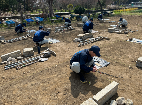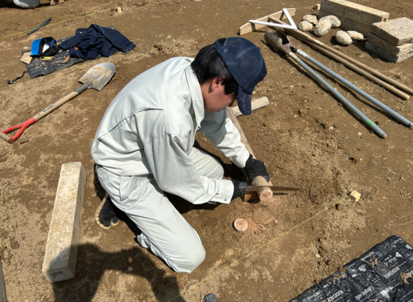 本日は、使用道具の復習や水糸の張り方、ダブルスコップの使い方等に取り組みました。