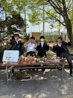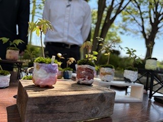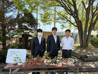 生徒が自分たちで作成したミニ盆栽を褒めて、手に取ってもらい、ありがとうございました。